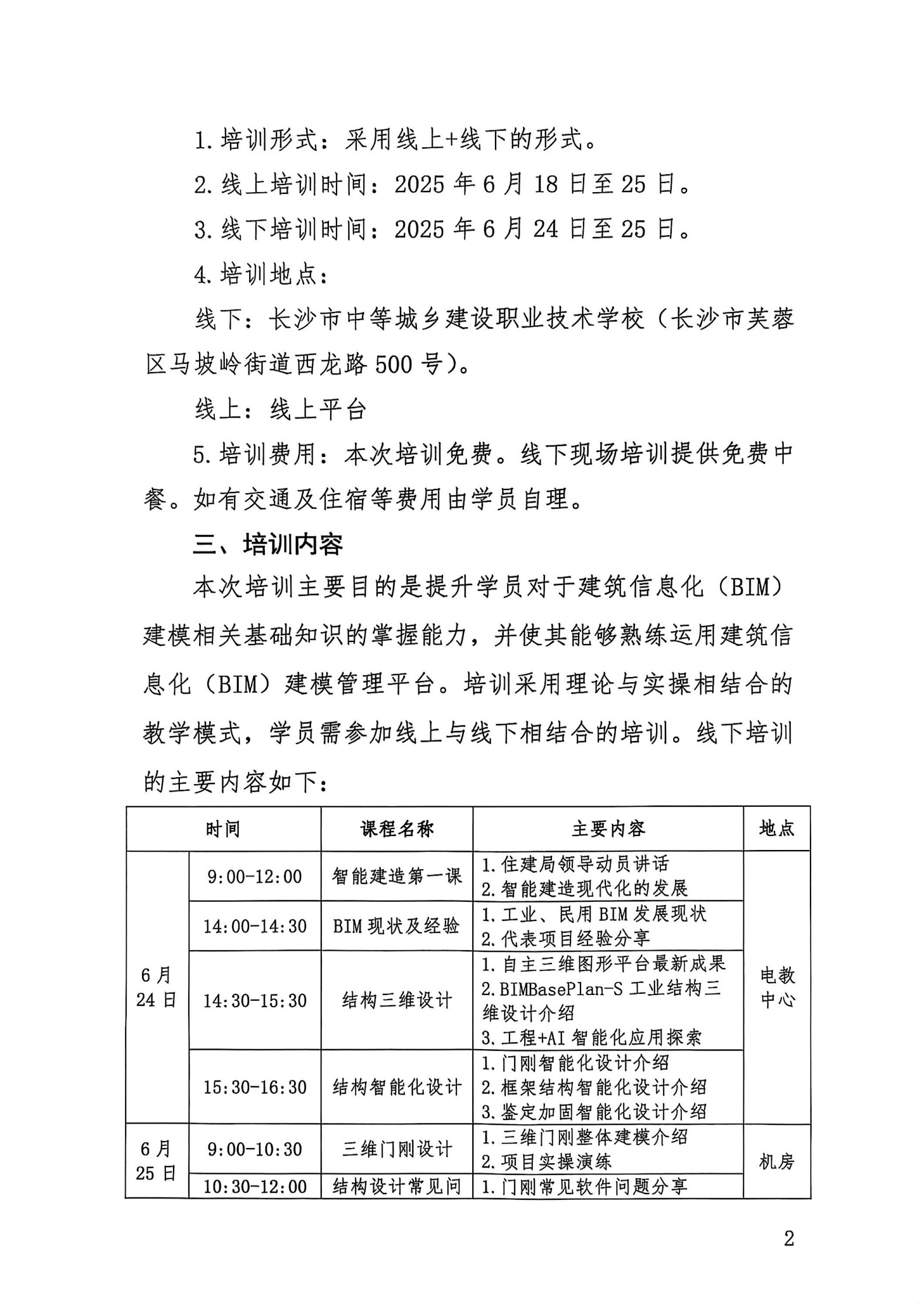 长沙市2025年建筑信息化(BIM)建模技术员培训考核通知