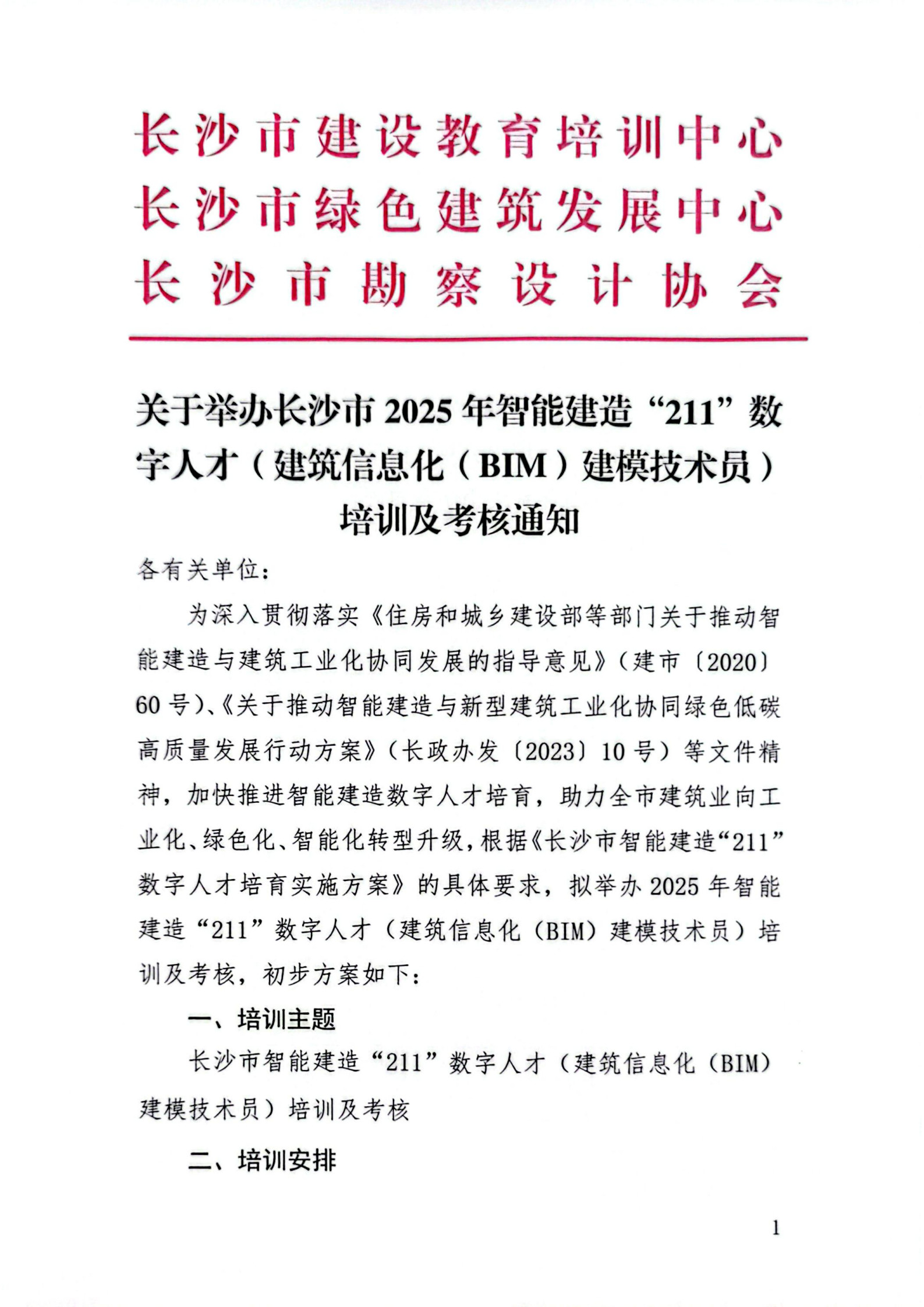 长沙市2025年建筑信息化(BIM)建模技术员培训考核通知